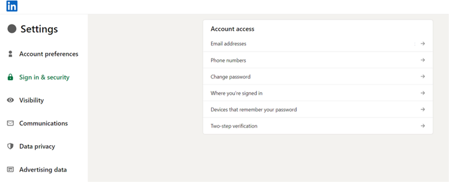 When you open LinkedIn on your desktop, go to Settings > Sign In & Security, here you will see the account access settings.